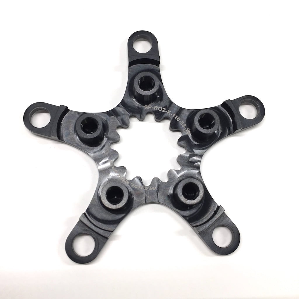 THIS SPIDER IS FOR USE ON RO2 X TYPE CRANKS THAT REQUIRE A DOUBLE CHAINRING SET UP WITH 110 BCD OUTER AND 58 BCD INNER